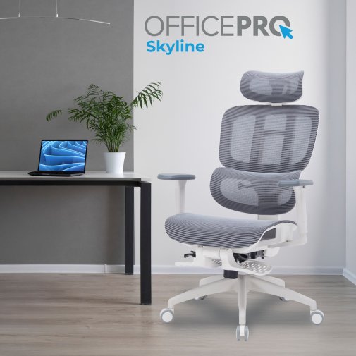 Officepro Skyline Footrest OC750 — це ергономічне, високоякісне офісне крісло, з широкими можливостями персональних налаштувань. Завдяки суцільному сітчастому покриттю спинки та міцному нейлоновому каркасу забезпечується вільна циркуляція повітря, що надає свіжості та легкості під час експлуатації.