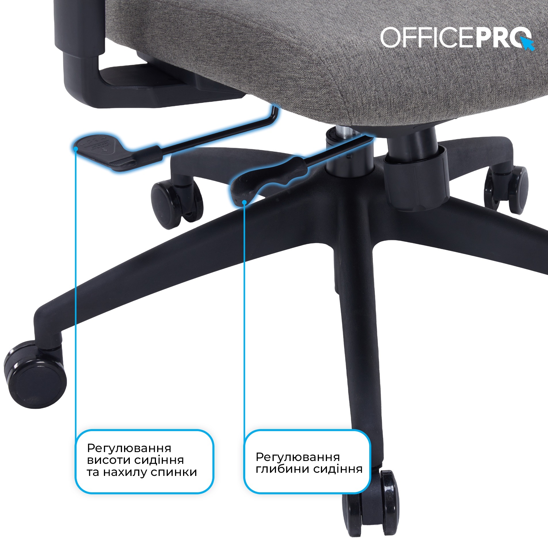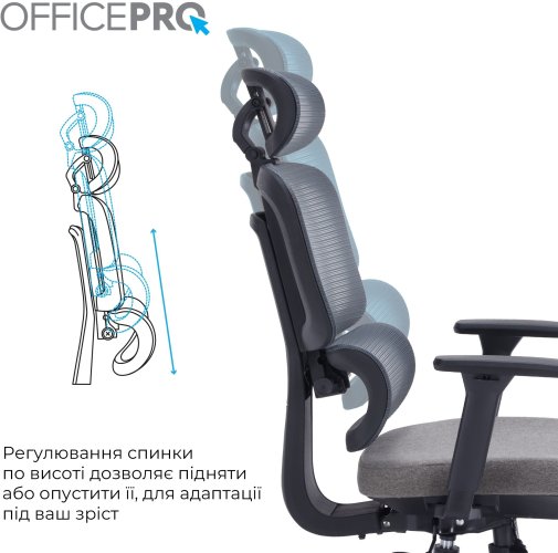 Регульована поперекова підтримка забезпечує ергономічно правильне положення спини, щоб запобігти перенапрузі при тривалому сидінні. Кут нахилу та висота підголівника регулюється для оптимального позиціювання. А завдяки регулюванню спинки за висотою ви можете налаштувати зручне положення спинки для свого зросту.