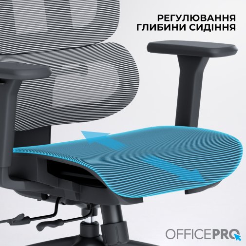 Нейлонові 3D підлокітники, покриті м'яким поліуретаном, регулюються за висотою, вперед-назад і змінюють кут повороту по горизонталі (назовні або всередину). Для регулювання нахилу та фіксації спинки, у кріслі використовується синхромеханізм, що у поєднанні з функцією регулювання глибини сидіння надає ще більше комфорту.