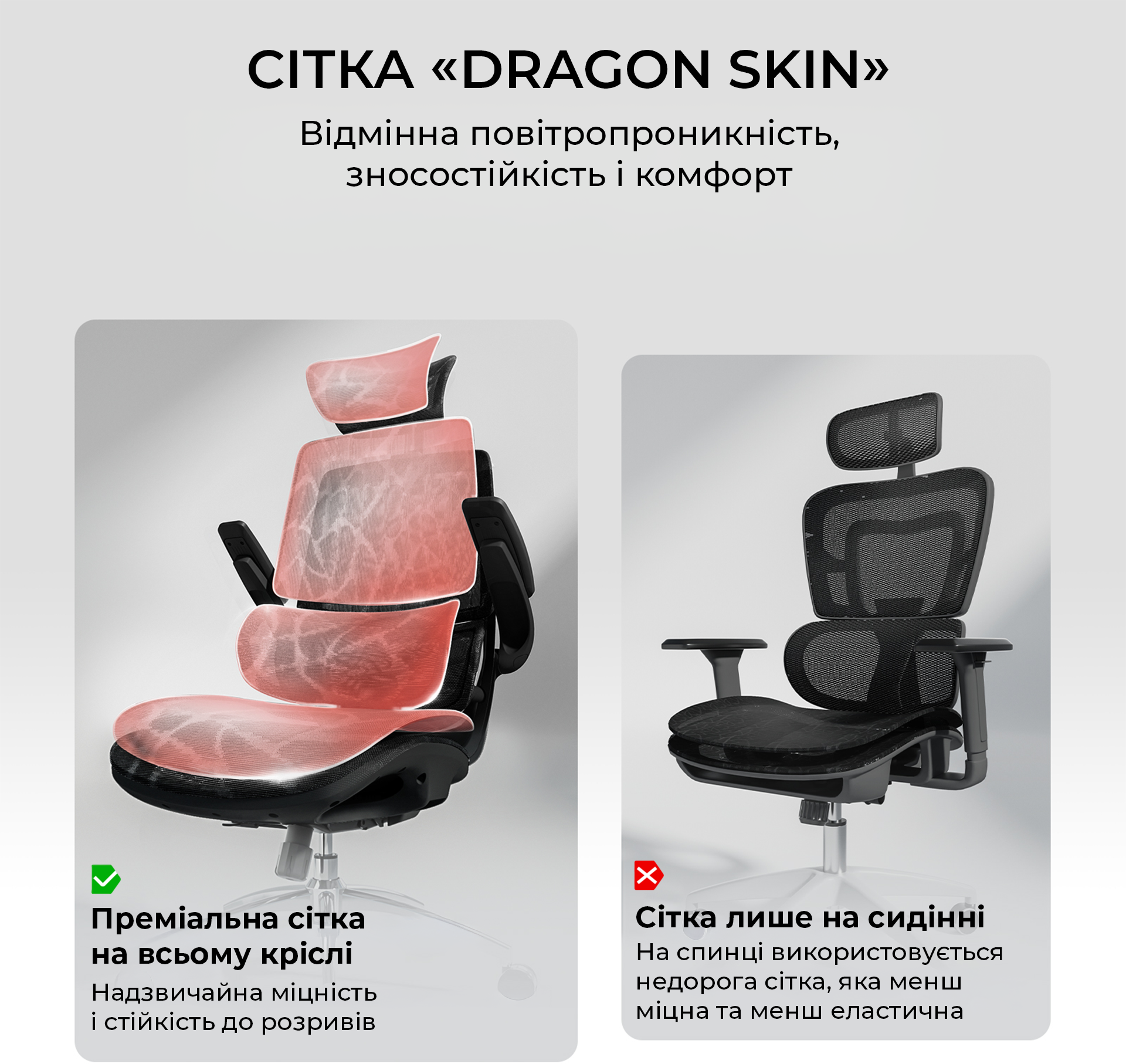 Модель виконана з дихаючої преміальної сітки, яка підтримує оптимальну циркуляцію повітря і запобігає перегріванню тіла при тривалому сидінні, а також відрізняється високою зносостійкістю і легкістю в догляді. Крісло підтримує регулювання висоти сидіння та кута нахилу спинки, має інтегроване місце для зберігання одягу та безшумні колеса розміром 60 мм для плавного пересування. Це крісло – ідеальне рішення для домашнього офісу, робочого простору або ігрового місця, де важливі ергономіка, зручність і довговічність.