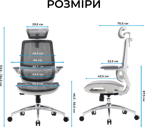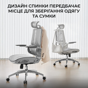 Модель виконана з дихаючої преміальної сітки, яка підтримує оптимальну циркуляцію повітря і запобігає перегріванню тіла при тривалому сидінні, а також відрізняється високою зносостійкістю і легкістю в догляді. Крісло підтримує регулювання висоти сидіння та кута нахилу спинки, має інтегроване місце для зберігання одягу та безшумні колеса розміром 60 мм для плавного пересування. Це крісло – ідеальне рішення для домашнього офісу, робочого простору або ігрового місця, де важливі ергономіка, зручність і довговічність.