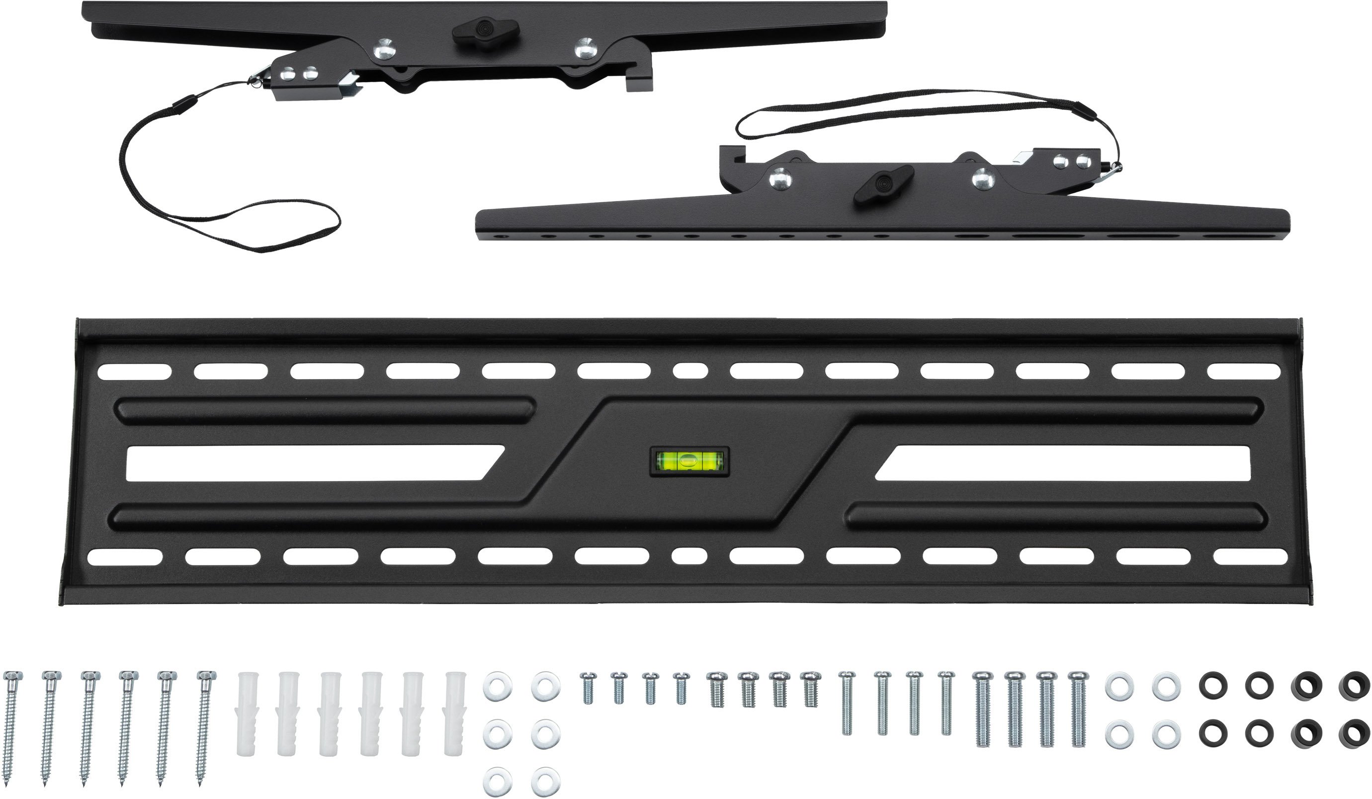 Монтаж продуманий для максимальної зручності: кронштейн можна встановлювати на суцільну стіну або на подвійну стійку з міжцентровою відстанню 406 / 450 / 600 мм. Для швидкого вирівнювання передбачені знімна монтажна панель, вбудований бульбашковий рівень та індикатор напряму, які значно спрощують процес встановлення навіть без професійного інструменту.