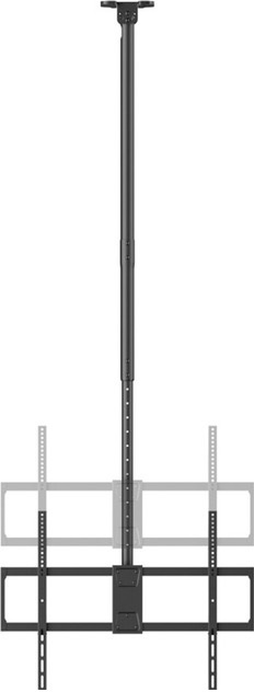 Монтаж кронштейна здійснюється до стелі, що робить його ідеальним вибором для просторих кімнат, комерційних приміщень або конференц-залів. Завдяки регульованій довжині штанги від 1090 до 2104 мм, ви можете легко адаптувати висоту екрана під будь-яку локацію.