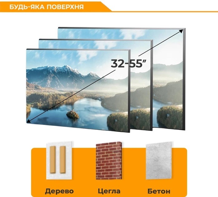 Конструкція кронштейна забезпечує максимальну стійкість і витримує вагу телевізора до 45 кг. Завдяки продуманій інженерії відстань від стіни становить лише 53 мм, що дозволяє розмістити телевізор максимально близько до поверхні та створити елегантний, майже «плаваючий» вигляд.