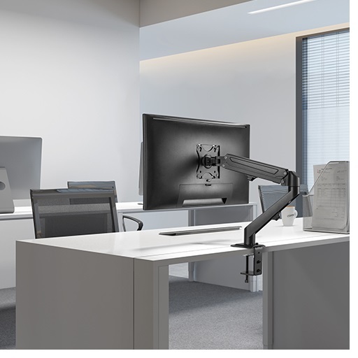 Виготовлений з комбінації алюмінію, пластику та сталі, кронштейн поєднує легкість, міцність і довговічність. Він витримує навантаження від 2 до 6,5 кг і повністю відповідає стандартам VESA 75x75 та 100x100, що гарантує сумісність з більшістю сучасних моніторів.