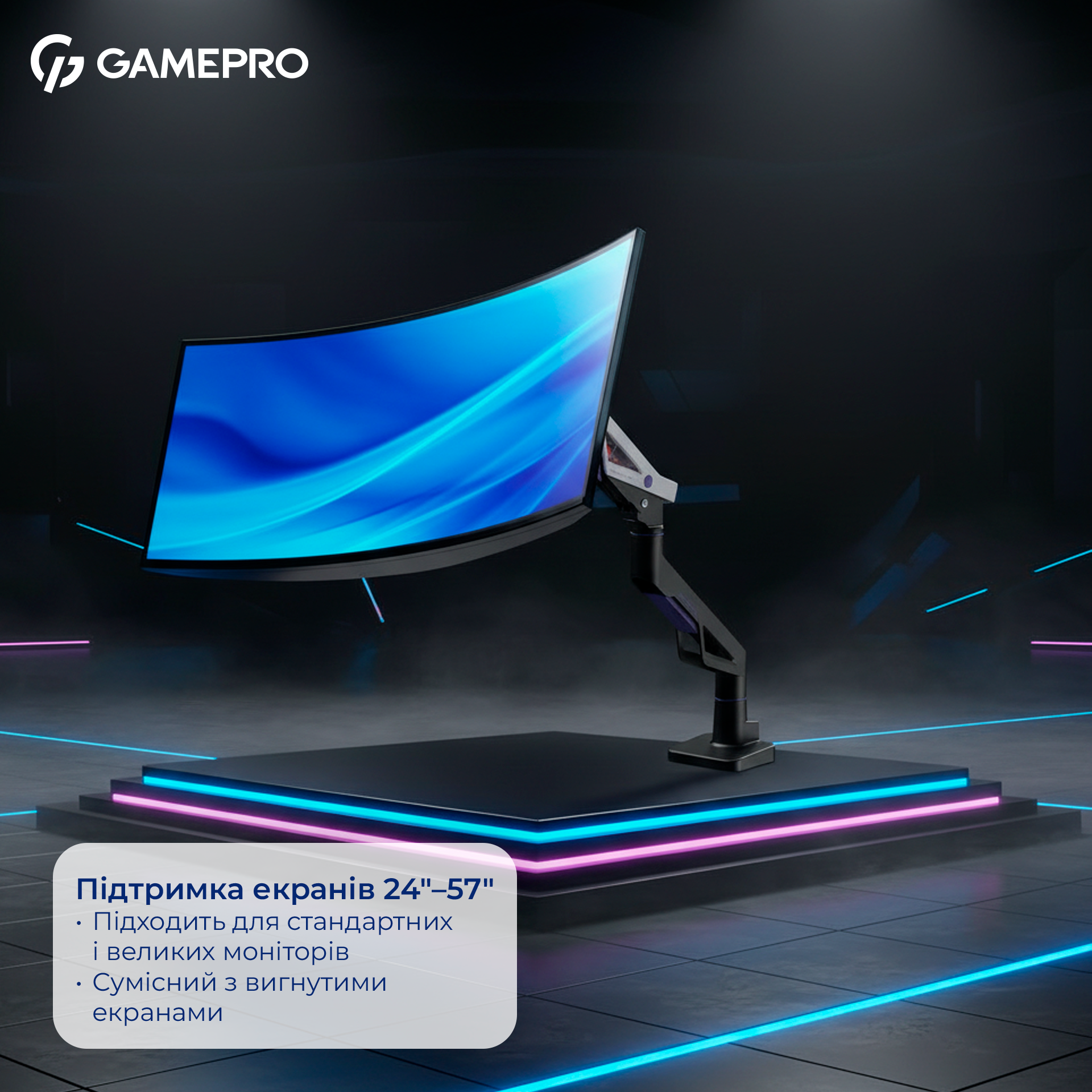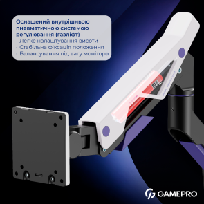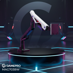GamePro MAG703BW — це високоякісне кріплення для монітора, яке забезпечує максимальний комфорт і ергономіку робочого простору. Воно витримує великі та важкі екрани діагоналлю від 24″ до 57″ та вагою до 30 кг, що робить його ідеальним рішенням для професійних користувачів, геймерів та дизайнерів. Виготовлене із міцних матеріалів — алюмінію, сталі та пластику, що гарантує тривалий термін служби й стійкість до зношування.