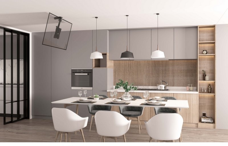 Виготовлений з високоякісної сталі, Gembird CM-43ST-01 вирізняється компактними габаритами в складеному стані — відстань від стелі 83 мм (у складеному вигляді), — що полегшує встановлення в обмежених нішах чи за меблями, з вагою 1.6 кг для легкого монтажу на гіпсокартон чи бетонну поверхню без додаткових анкерів, перетворюючи процес фіксації на простий ритуал з комплектними гвинтами та шаблоном для розмітки.