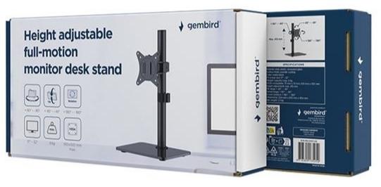 Регульована за висотою настільна підставка для монітора Gembird MS-D1ST-03 оснащена основою із загартованого скла, що забезпечує стабільне та надійне розміщення на будь-якому столі. Вона сумісна з VESA (максимум 100 x 100 мм) і працює практично з будь-яким LCD-монітором розміром до 32 дюймів та вагою до 9 кг. Вбудована система кабелів дозволяє організувати дроти для акуратного та впорядкованого робочого простору.