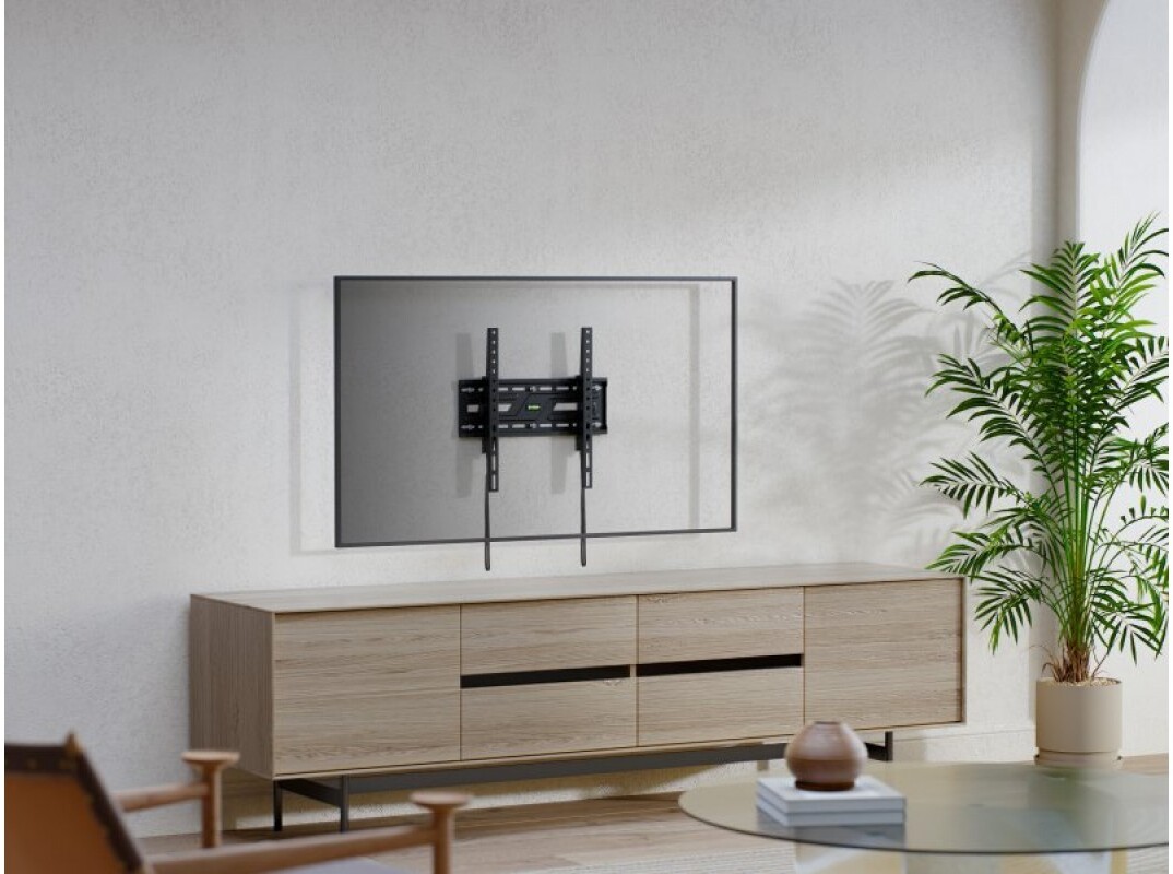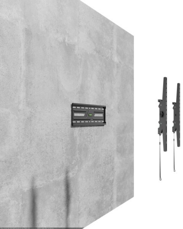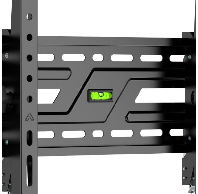 Для ще більшої практичності модель обладнана автоматичними пружинними замками зі швидкознімними шнурами, які забезпечують надійну фіксацію телевізора та дають змогу легко його знімати при потребі. Вбудований рідинний рівень допомагає точно вирівняти кріплення під час монтажу, а відстань до стіни лише 50 мм забезпечує охайний, естетичний вигляд у будь-якому інтер’єрі.