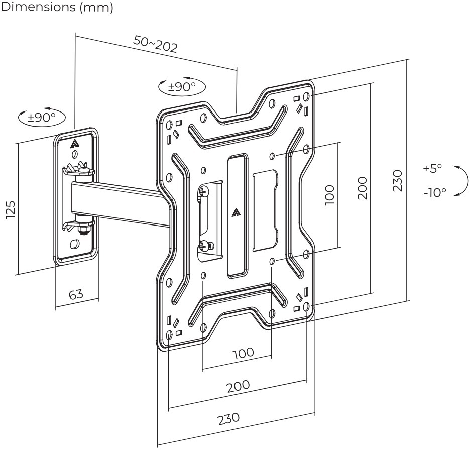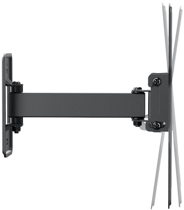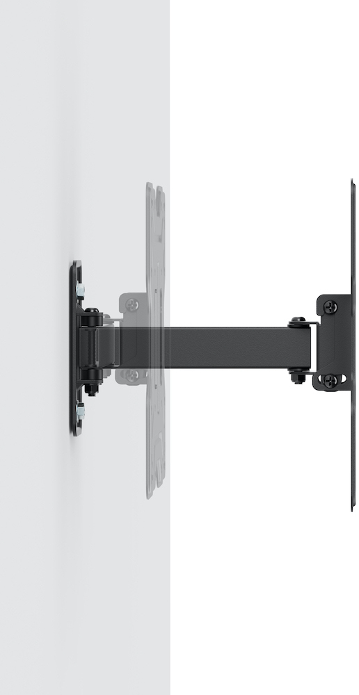 Повний поворот на 180° дозволяє легко розвернути екран для перегляду з різних кутів кімнати — ідеально для кухні, вітальні чи офісу, де потрібно швидко змінити напрямок. Нахил -10° - +5 ° допомагає усунути відблиски від ламп чи вікон і налаштувати комфортний кут огляду для сидячого чи лежачого положення. Мінімальна відстань від стіни — 50–202 мм створює ефект «плаваючого» екрану без відчуття громіздкості.