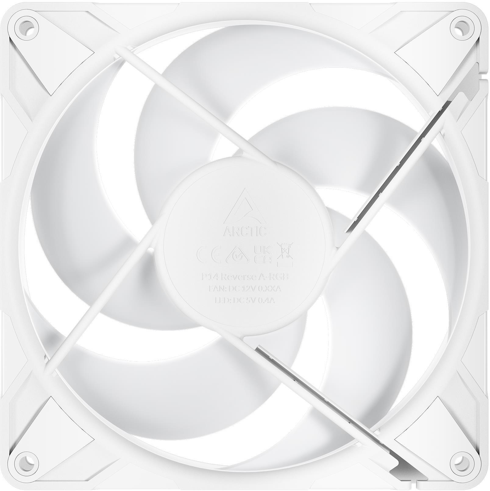 Arctic P14 Pro Reverse ARGB — це високоефективний кулер для корпусу, призначений для естетичних збірок ПК. Його ключова особливість полягає у зворотному потоці повітря, що дозволяє забирати повітря з тильного боку, роблячи вентилятор ідеальним для візуально привабливих систем. Розмір кулера становить 140 x 140 x 30 мм, вага — 253 грами, а матеріал — міцний пластик з прозорою білою крильчаткою.