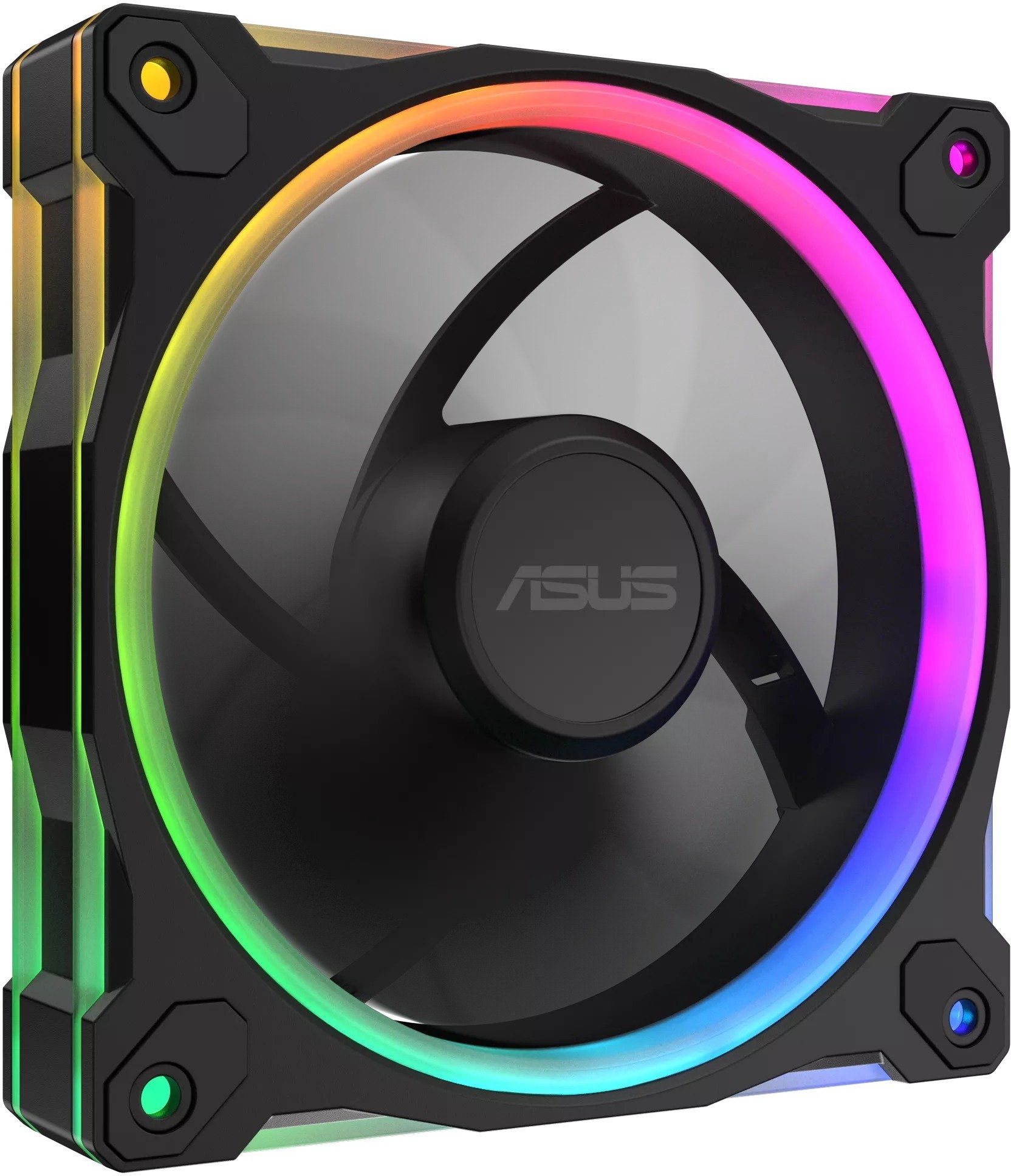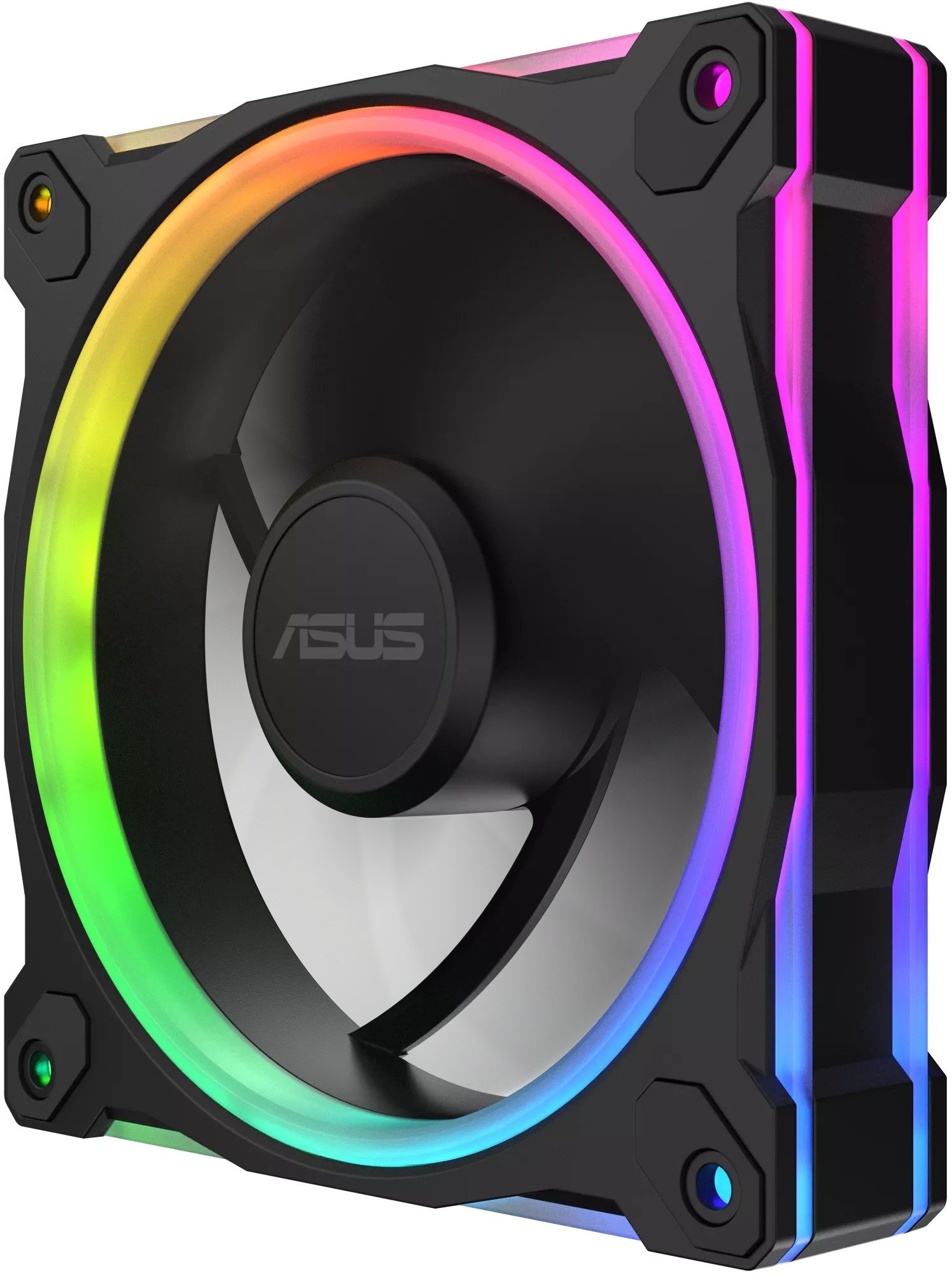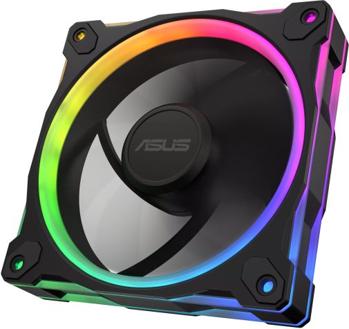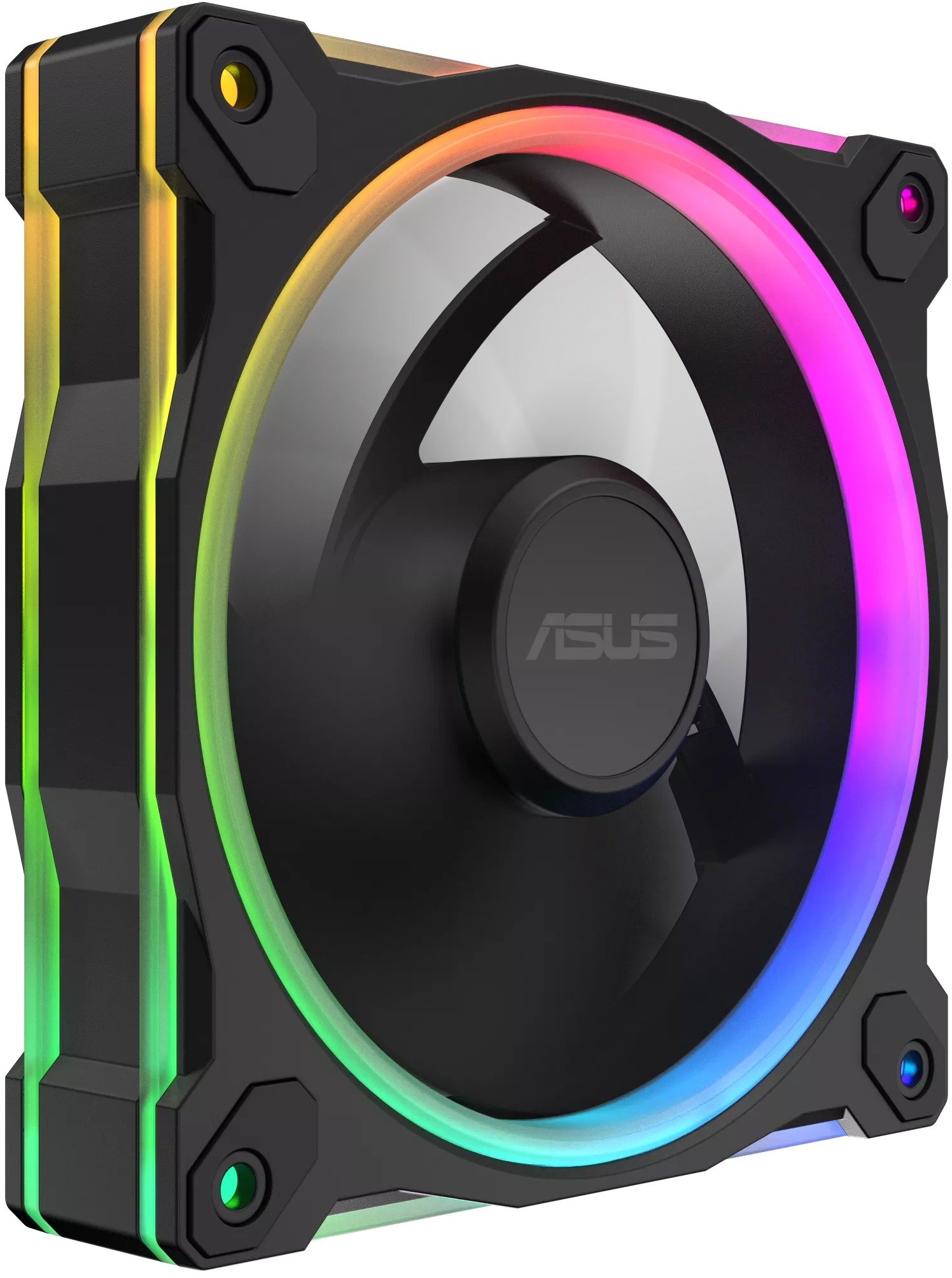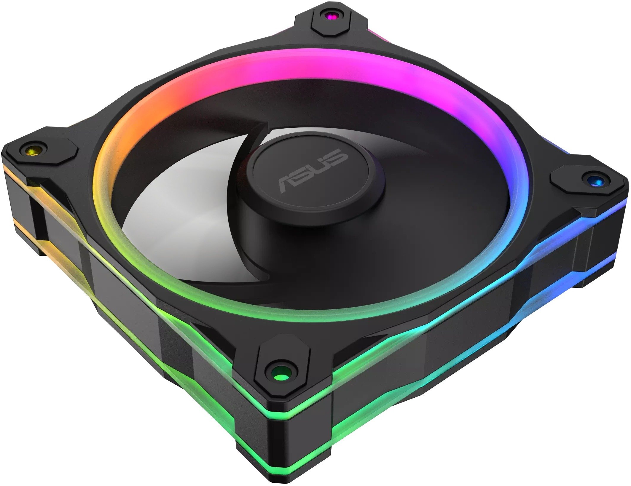 Естетична складова заслуговує окремої уваги: двостороннє ARGB-підсвічування реалізовано через 20 адресних RGB-світлодіодів у круговому дизайні. Завдяки цьому вентилятор випромінює яскраве та рівномірне світло з обох боків, що чудово доповнює вигляд системи з прозорими панелями. Сумісність з ASUS Aura Sync дозволяє повністю синхронізувати ефекти підсвічування з іншими компонентами ПК — відеокартою, материнською платою, пам’яттю тощо.