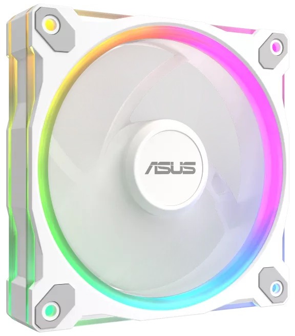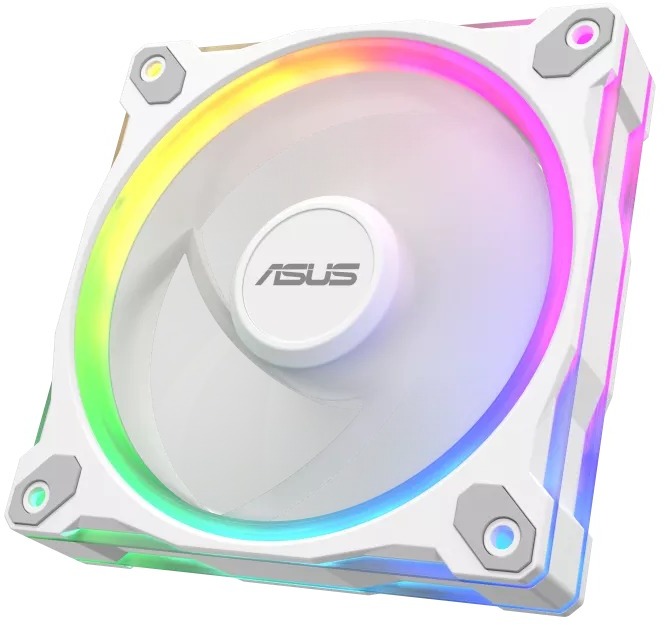 Естетична складова заслуговує окремої уваги: двостороннє ARGB-підсвічування реалізовано через 20 адресних RGB-світлодіодів у круговому дизайні. Завдяки цьому вентилятор випромінює яскраве та рівномірне світло з обох боків, що чудово доповнює вигляд системи з прозорими панелями. Сумісність з ASUS Aura Sync дозволяє повністю синхронізувати ефекти підсвічування з іншими компонентами ПК — відеокартою, материнською платою, пам’яттю тощо.