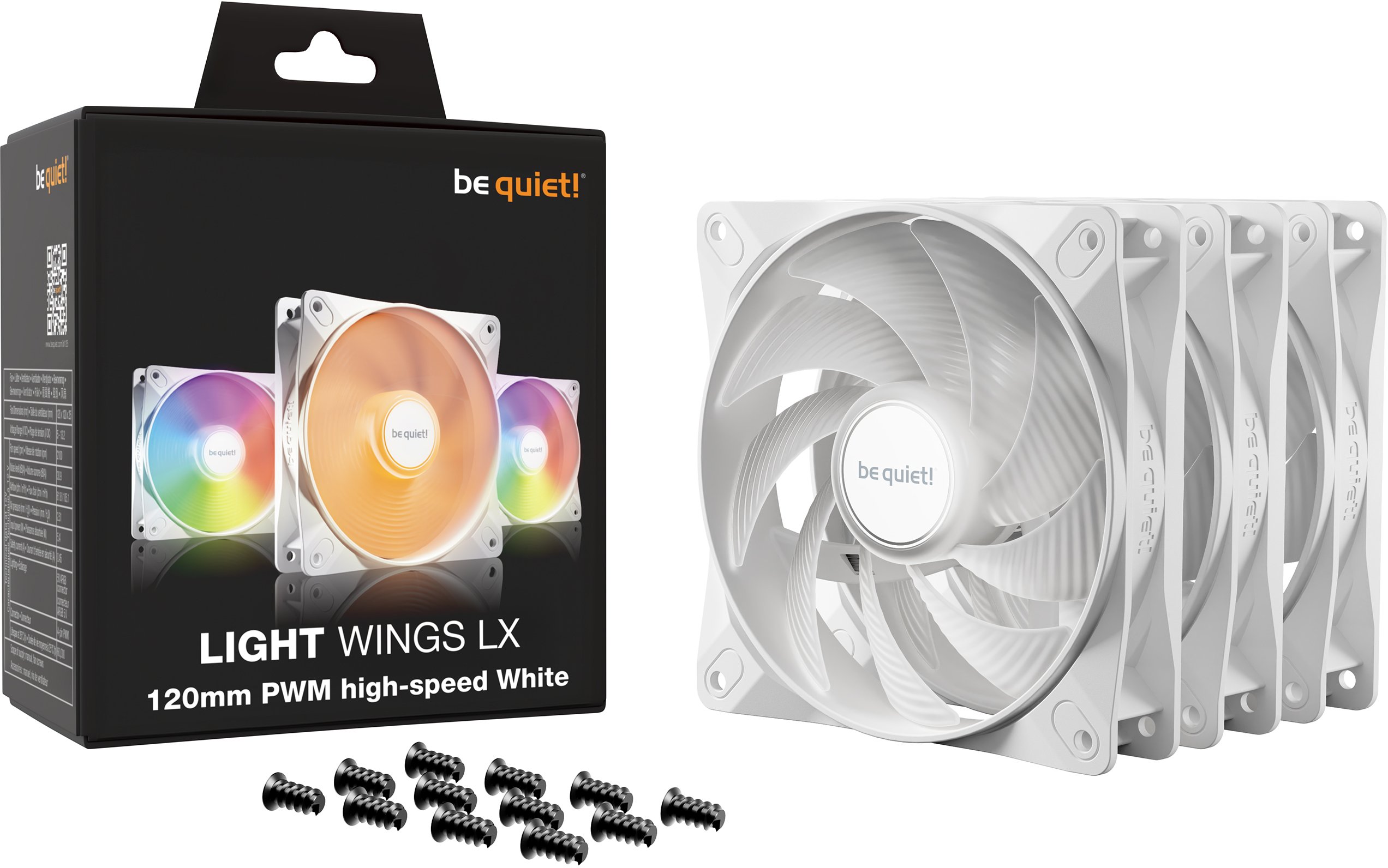 be quiet! Light Wings LX 120mm PWM High-Speed — це преміальний ARGB вентилятор 120 мм із підвищеною продуктивністю, вражаючим підсвічуванням та інноваційною технологією зворотного зв'язку, ідеальний вибір для тих, хто шукає найкращі 120-мм ARGB вентилятори для радіаторів СРО, щільних кулерів CPU та корпусів ПК із вимогливим охолодженням. Версія High-Speed відрізняється від стандартної PWM значно вищими обертами, більшим тиском повітря та технологією стабілізації швидкості — при збереженні того самого ефектного підсвічування через матові лопаті.