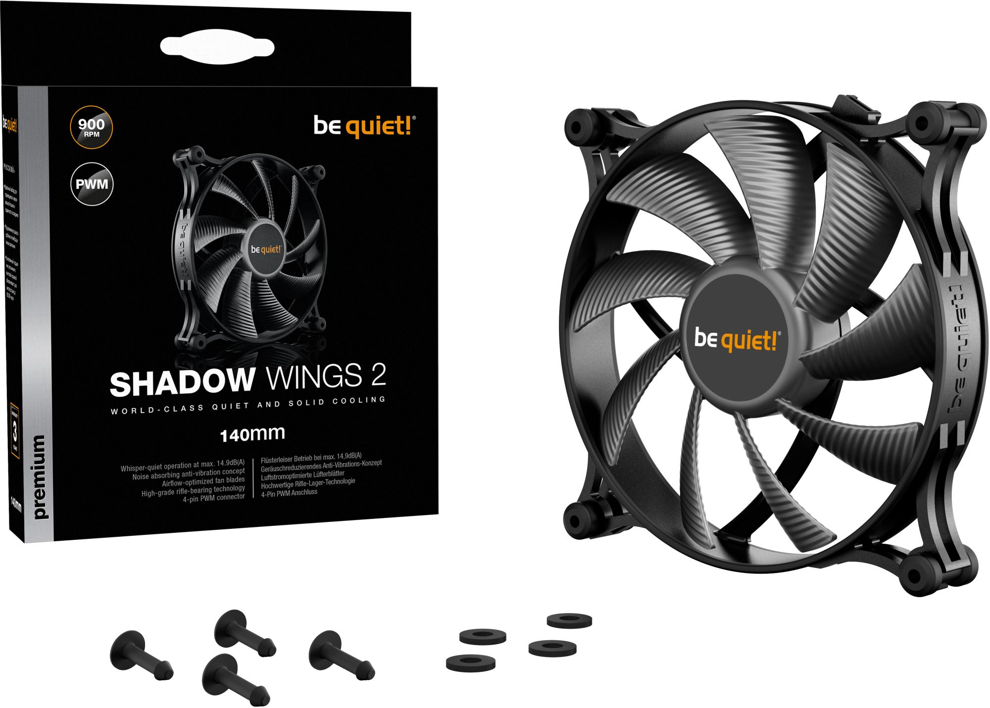 be quiet! Shadow Wings 2 140mm PWM — це 140-мм корпусний вентилятор, орієнтований виключно на тихі збірки, де мінімальний рівень шуму є пріоритет. Без підсвічування, без зайвих деталей — лише продумана аеродинаміка, якісні матеріали та інженерна стриманість, характерна для найкращих продуктів be quiet!.