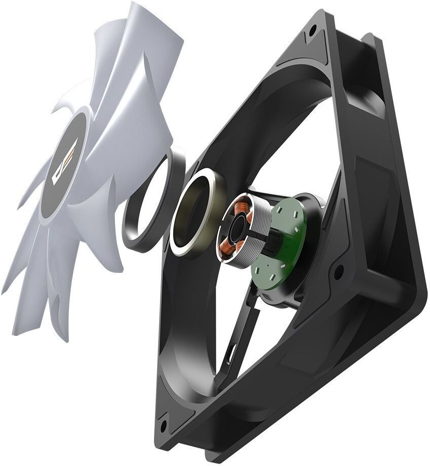 Darkflash CL12 Rainbow — це компактний корпусний вентилятор розміром 120x120x25 мм, призначений для покращення охолодження та естетики ПК-збірки. Його квадратна рамка з інтегрованим LED-підсвічуванням створює яскравий райдужний ефект, який ідеально доповнює сучасні геймерські чи стильні комп'ютерні системи.