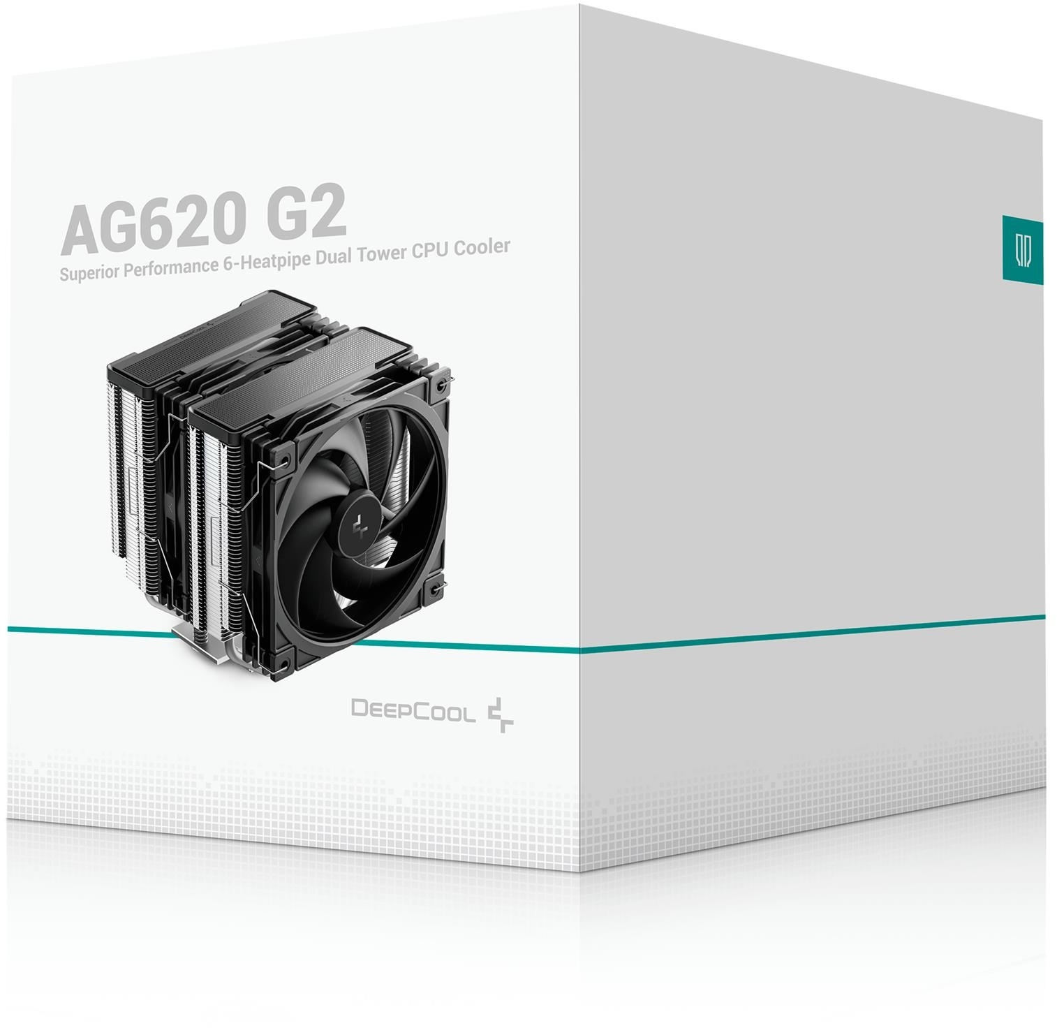 AG620 G2 відкриває новий рівень ефективності для двобаштових повітряних кулерів завдяки оновленню другого покоління, яке поєднує підвищену продуктивність із сучасним дизайном. Оснащений шістьма тепловими трубками та масивним двосекційним радіатором, він працює у парі з двома точно налаштованими 120-мм вентиляторами, забезпечуючи потужний повітряний потік і ефективне відведення тепла.