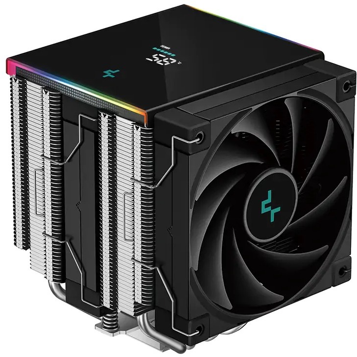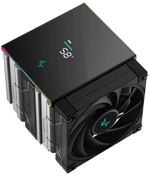 Кулер AK620 DIGITAL SE від DeepCool відкриває нову еру цифрових рішень для охолодження процесорів. Він поєднує перевірену ефективність серії AK з сучасними технологіями, такими як цифровий дисплей, що відображає температуру та навантаження процесора в реальному часі. Додаткові RGB-світлодіодні смуги надають системі стильного вигляду, а керування дисплеєм здійснюється через зручне програмне забезпечення, що потребує лише вільного порту USB 2.0.