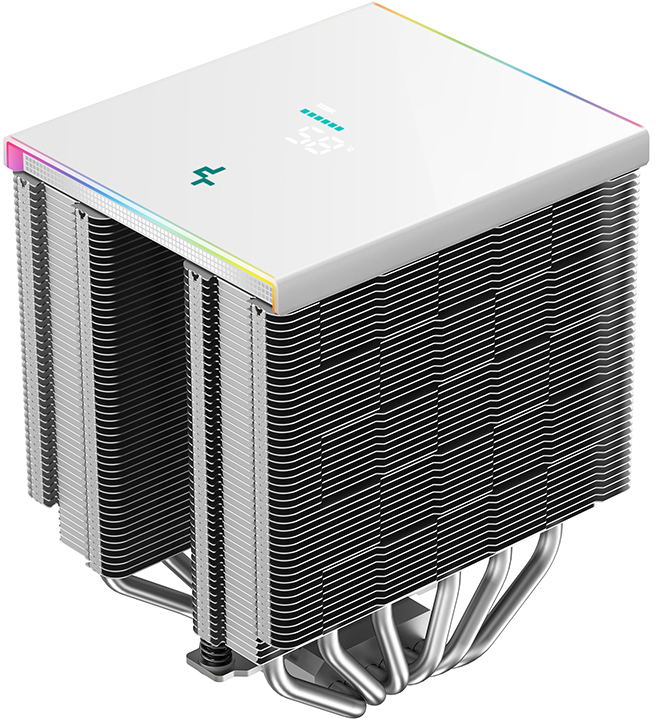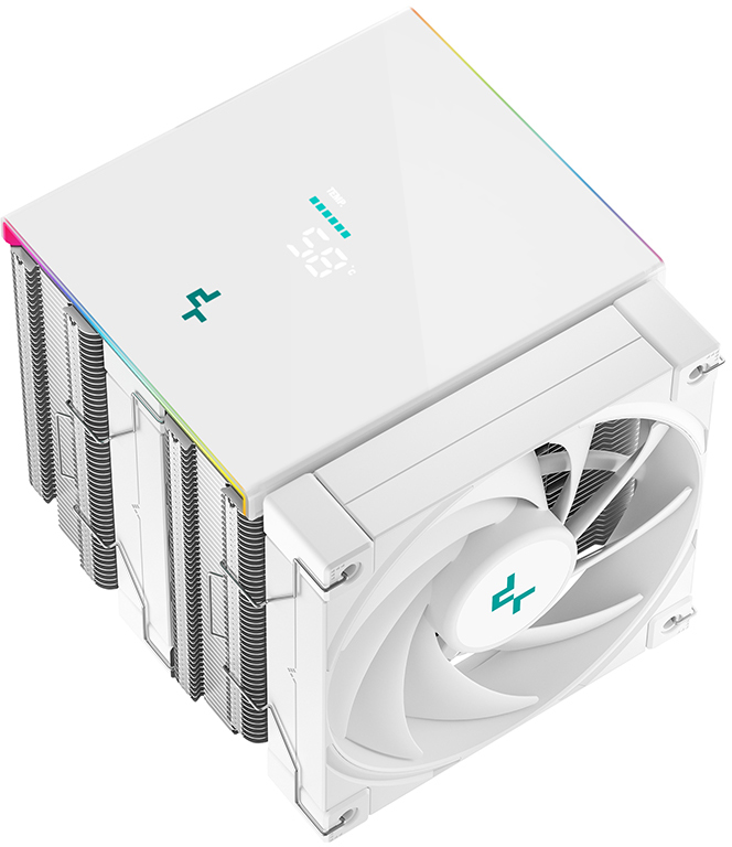 Кулер AK620 DIGITAL SE від DeepCool відкриває нову еру цифрових рішень для охолодження процесорів. Він поєднує перевірену ефективність серії AK з сучасними технологіями, такими як цифровий дисплей, що відображає температуру та навантаження процесора в реальному часі. Додаткові RGB-світлодіодні смуги надають системі стильного вигляду, а керування дисплеєм здійснюється через зручне програмне забезпечення, що потребує лише вільного порту USB 2.0.