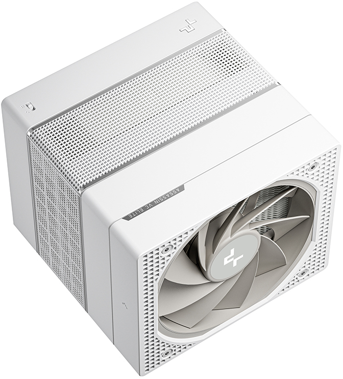 Кулер Deepcool Assassin VC Elite — це флагманська модель із серії ASSASSIN, виконана в елегантному білому кольорі. Завдяки інноваційній камері в основі, яка працює як сплюснута теплова трубка з високою теплопровідністю, кулер забезпечує вражаючу теплову потужність до 300 Вт. Це дозволяє ефективно відводити тепло через дві радіаторні башти, забезпечуючи надійне охолодження навіть для найпотужніших процесорів.
