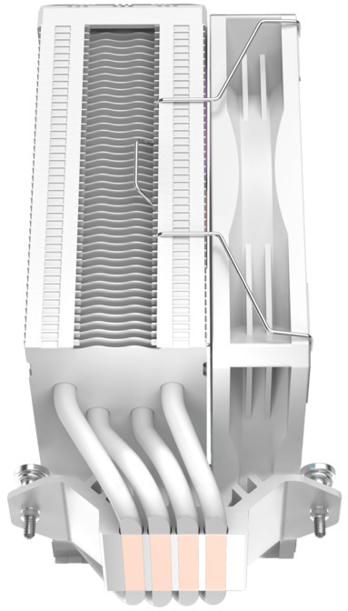 Чотири 6-міліметрові теплові трубки з прямим контактом до процесора гарантують швидке відведення тепла, а 120-міліметровий вентилятор із гідродинамічним підшипником забезпечує потік повітря до 74.8 CFM при швидкості 800–1800 об/хв. Це забезпечує тиху роботу з рівнем шуму до 33.8 дБ, що ідеально для комфортного використання. Функція PWM автоматично регулює швидкість вентилятора залежно від температури.