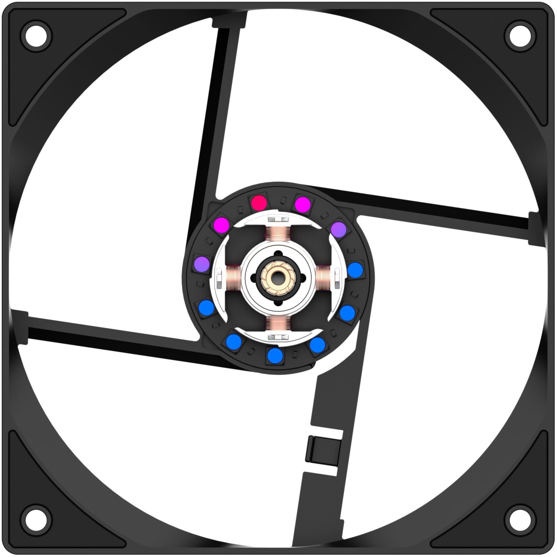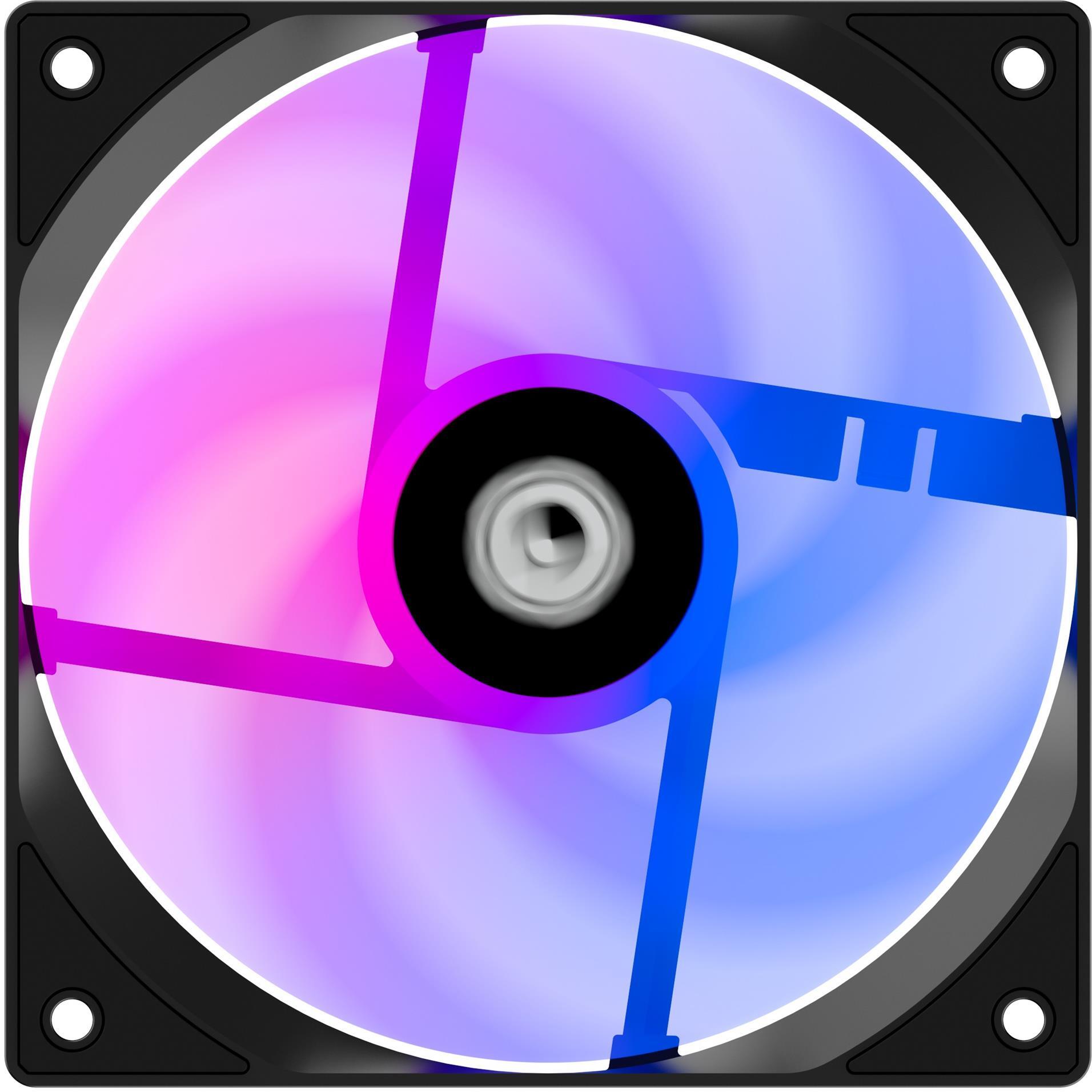 В комплекті встановлено тихий 120-мм вентилятор з гідродинамічним підшипником і RGB-підсвіткою. Швидкість обертання регулюється автоматично через 4-pin PWM до 2000 об/хв, забезпечуючи баланс між низьким рівнем шуму та високою продуктивністю — до 58 CFM повітряного потоку.