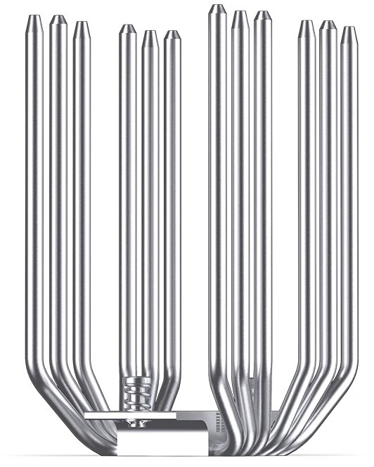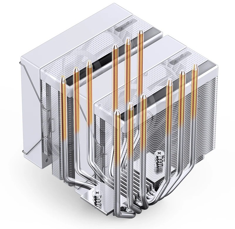 Конструкція кулера базується на двох масивних радіаторних вежах, пронизаних шістьма тепловими трубками діаметром 6 мм, які швидко відводять тепло від процесора та рівномірно розподіляють його по всій площі ребер. Завдяки цьому CB80 здатний впевнено працювати з процесорами з тепловим пакетом до 260 Вт (D-TDP), що робить його придатним не лише для ігрових, а й для робочих та оверклокерських конфігурацій.