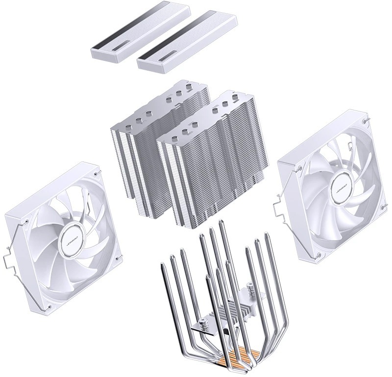 За активне охолодження відповідають два 120-мм вентилятори. Перший вентилятор оснащений ARGB-підсвічуванням і працює в діапазоні 800–1800 об/хв, забезпечуючи повітряний потік до 77,07 CFM і тиск до 1,86 мм H₂O при контрольованому рівні шуму до 35,4 дБ(A). Другий вентилятор, оптимізований для стабільного продування радіатора, має широкий діапазон швидкостей 300–1800 об/хв і здатний створювати потік до 80,41 CFM, залишаючись тихим навіть на високих обертах. Обидва вентилятори підтримують PWM-керування, що дозволяє точно налаштовувати баланс між продуктивністю та акустичним комфортом.