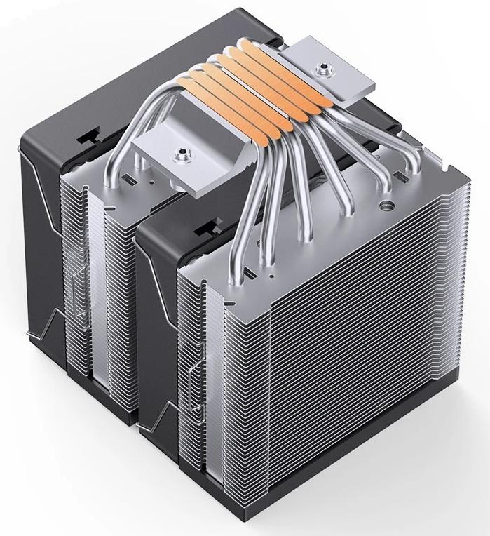 Два 120-мм вентилятори з максимальною швидкістю обертання 1600 об/хв гарантують відмінний повітряний потік, а рівень шуму, що змінюється в межах від 22 до 34 дБ, залишається прийнятним навіть для найвибагливіших користувачів. Шість теплових трубок діаметром 6 мм із прямим контактом до процесора ефективно відводять тепло, що робить цю модель надійним вибором для потужних систем.