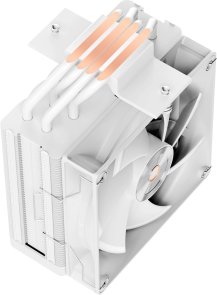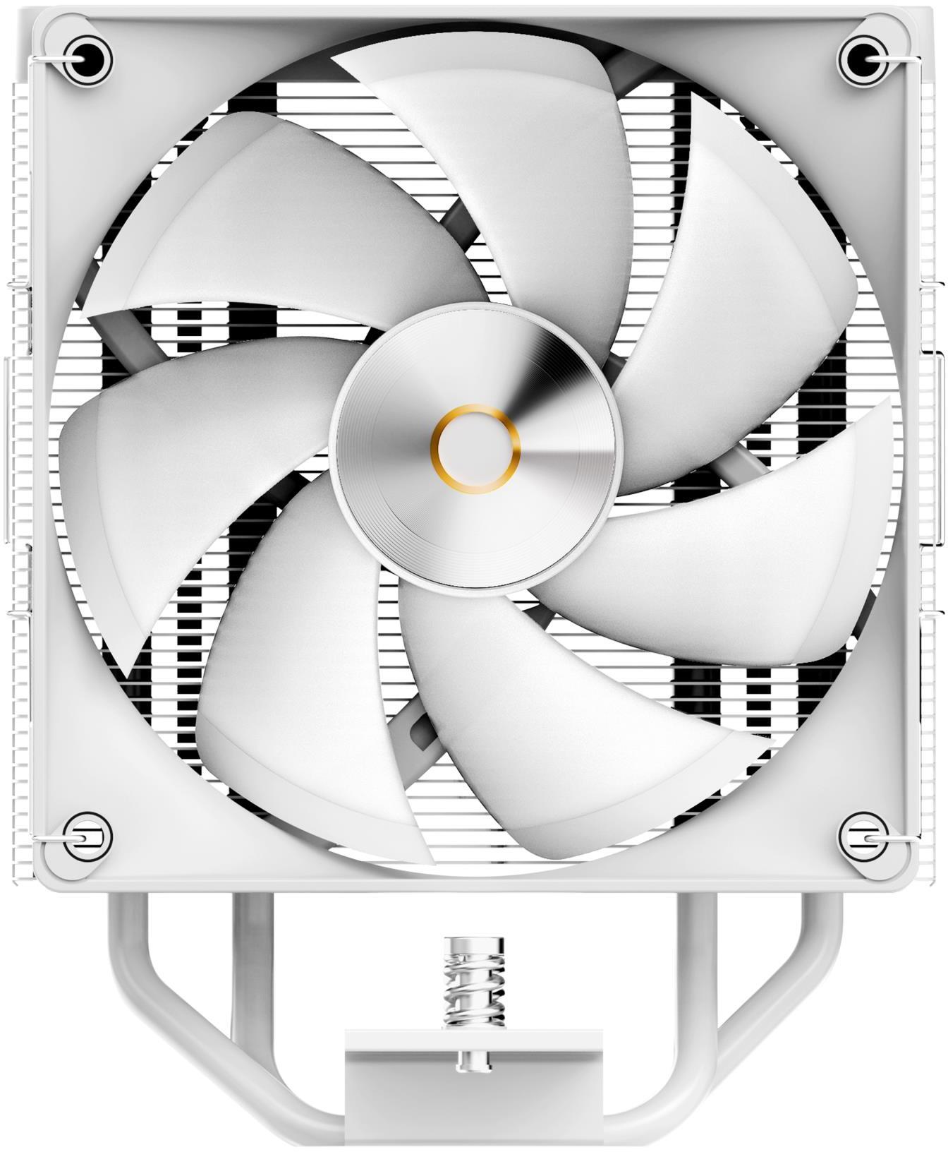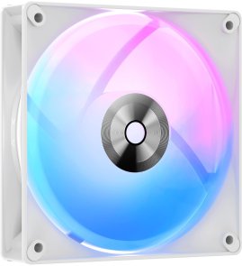 Вентилятор з гідравлічним підшипником працює тихо — до ≤29 дБ(А) — при цьому забезпечує потужний потік повітря до 73 CFM і тиск 4.3 мм вод. ст. Швидкість обертання регулюється в діапазоні 500–2000 об/хв. Круглі елементи в дизайні лопатей продовжують загальну естетику, роблячи кулер частиною стильного ПК.
