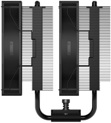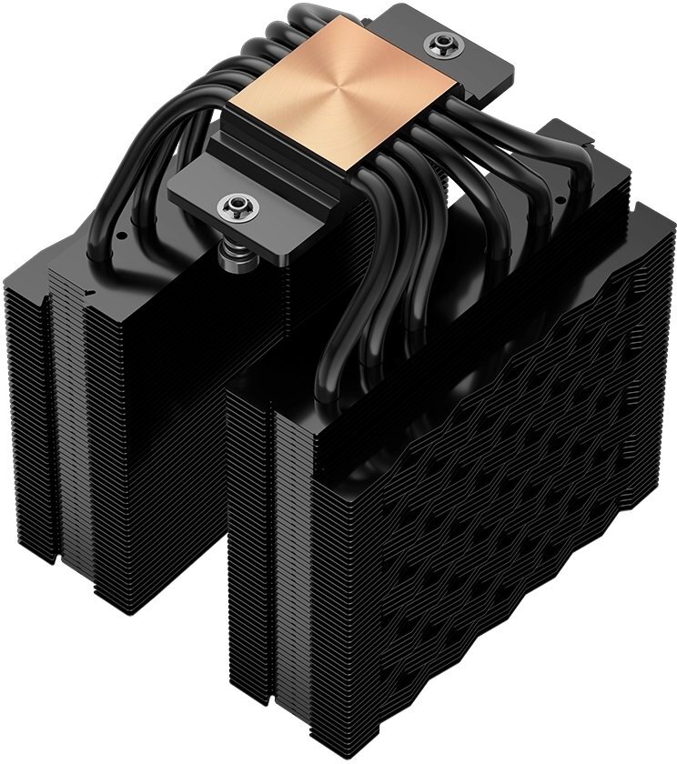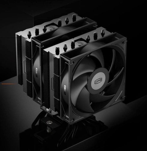 Потужне та тихе охолодження забезпечується коштом регульованої швидкості вентиляторів через систему PWM. При низькому навантаженні кулер працює тихо, а при необхідності вентилятори прискорюються для ефективного охолодження процесора. Двобаштовий дизайн і велика площа розсіювання тепла гарантують стабільність навіть під високим навантаженням.