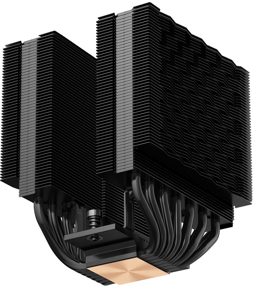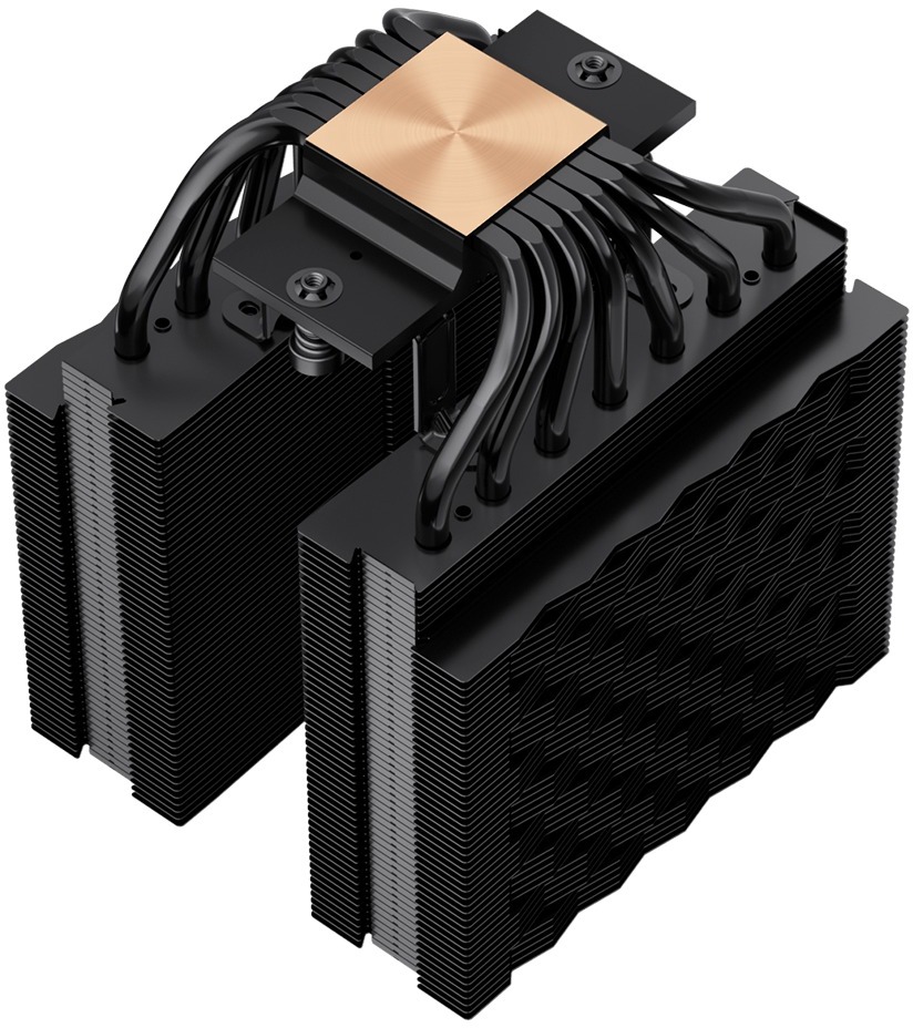 В основі ефективності RT720 лежить продумана система тепловідведення. Кулер оснащений сімома тепловими трубками діаметром 6 мм, оптимізованими під дію гравітації, що забезпечує виняткову теплопровідність для потужних і розгонних процесорів. Подвійна баштова конструкція з посиленим кронштейном проти деформації максимізує площу розсіювання тепла та гарантує довгострокову структурну надійність.