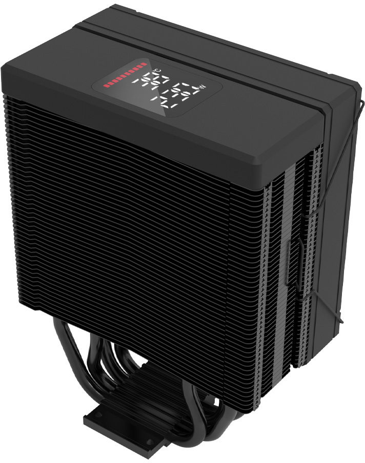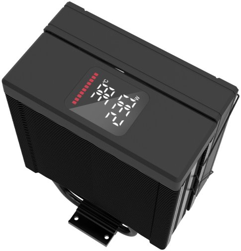 Модель сумісна з актуальними сокетами Intel LGA1851/1700 та AMD AM5/AM4, має компактні розміри 120 × 71 × 155 мм і вагу 498 г. На верхній кришці розташовані індикатори навантаження, температури процесора та споживання енергії, що додає зручності моніторингу. Чорне покриття теплових трубок не лише покращує теплопровідність, а й надає естетичного вигляду.