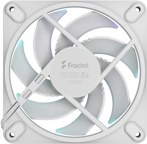 FRACTAL DESIGN Momentum 12 RGB – це високоефективний кулер, який поєднує потужне охолодження та стильний дизайн. Завдяки розміру 120 мм і лопатям із рідиннокристалічного полімеру він забезпечує потужний повітряний потік і статичний тиск, ефективно охолоджуючи систему.