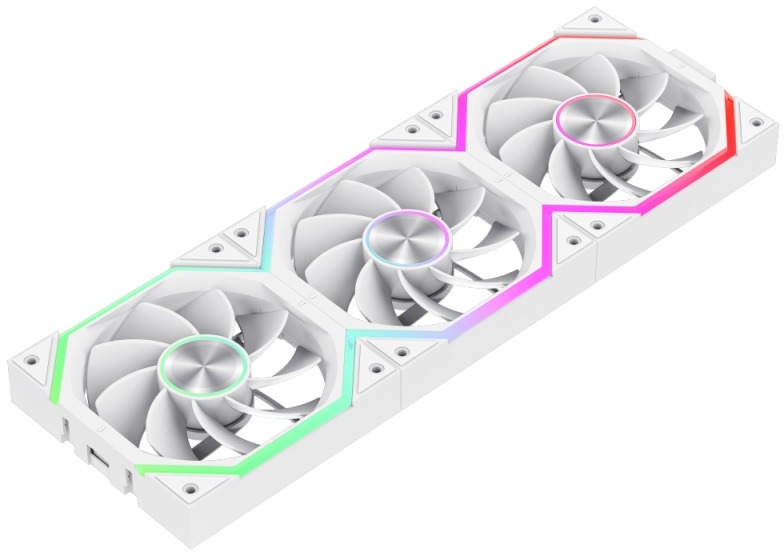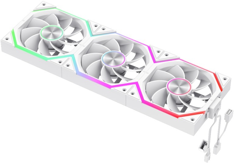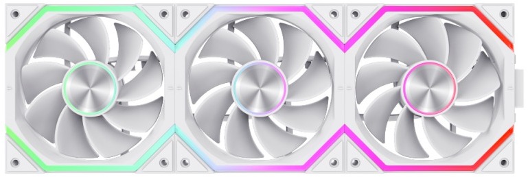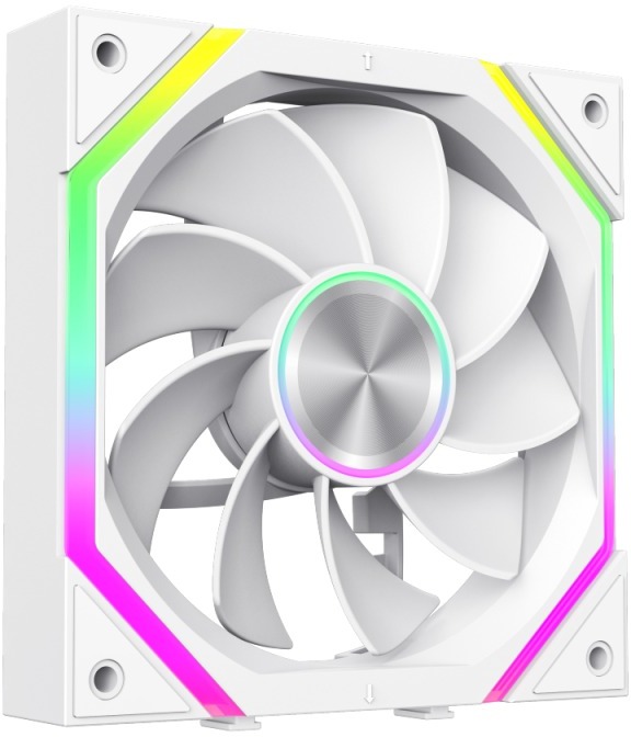 Підсвічування реалізоване за допомогою 24 адресованих ARGB-діодів — 8 у центральному осьовому кільці та 16 у зовнішньому кільці, розміщених симетрично з обох боків крильчатки. Завдяки цьому ідентична рівномірна підсвітка видна як спереду, так і ззаду вентилятора. Центральна втулка виготовлена з металу у стилі CD-патерну, що надає пристрою преміального вигляду. Вентилятор повністю сумісний із синхронізацією підсвічування материнської плати через 3-pin ARGB-заголовок (Aura Sync та аналоги), доступний у чорному та білому варіантах.