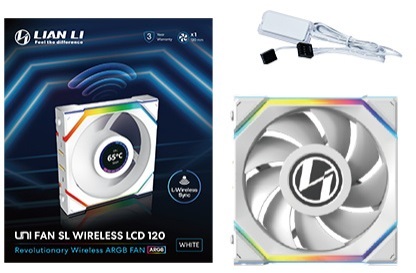 Вентилятори серії SL Wireless підтримують систему взаємного з'єднання UNIFAN — фірмовий механізм daisy-chain, завдяки якому фани з'єднуються між собою без окремих кабелів, просто защіпками-контактами прямо на рамці. LCD-дисплей діаметром 1,6 дюйма розташований у центрі вентилятора і дозволяє відображати температуру процесора, завантаження системи, власні зображення або анімацію — все налаштовується через програмне забезпечення L-Connect 3.