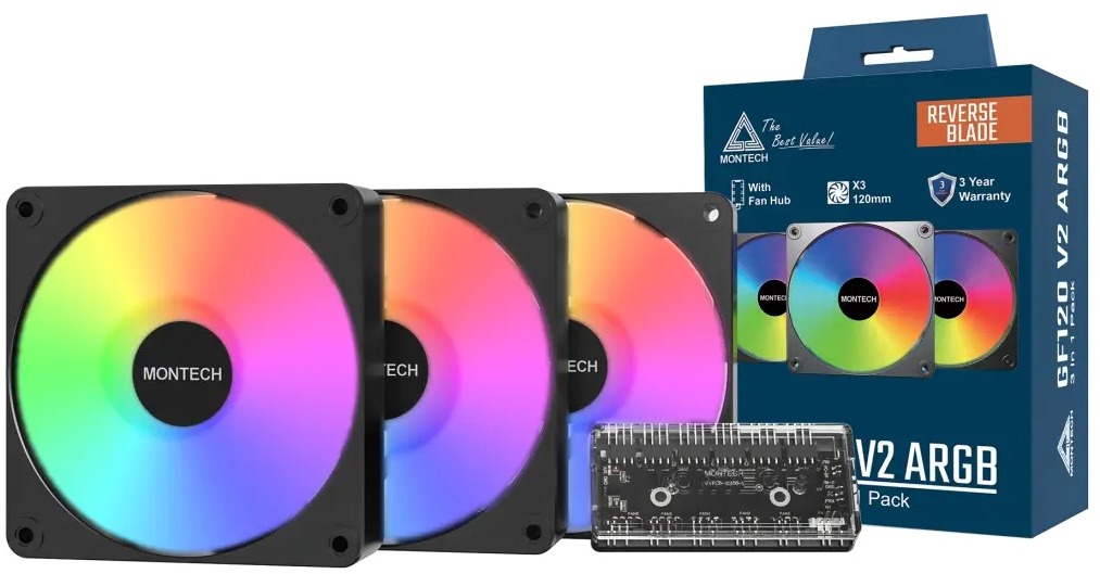 Кулер для корпусу Montech GF120R V2 ARGB є компактним і ефективним рішенням для оптимізації охолодження в геймерських та продуктивних системах, розробленим для ентузіастів, які прагнуть поєднати високу продуктивність вентиляції з персоналізованим освітленням в обмеженому просторі, забезпечуючи стабільний тепловий баланс без компромісів у тиші чи естетиці. До комплекту входить три кулери.