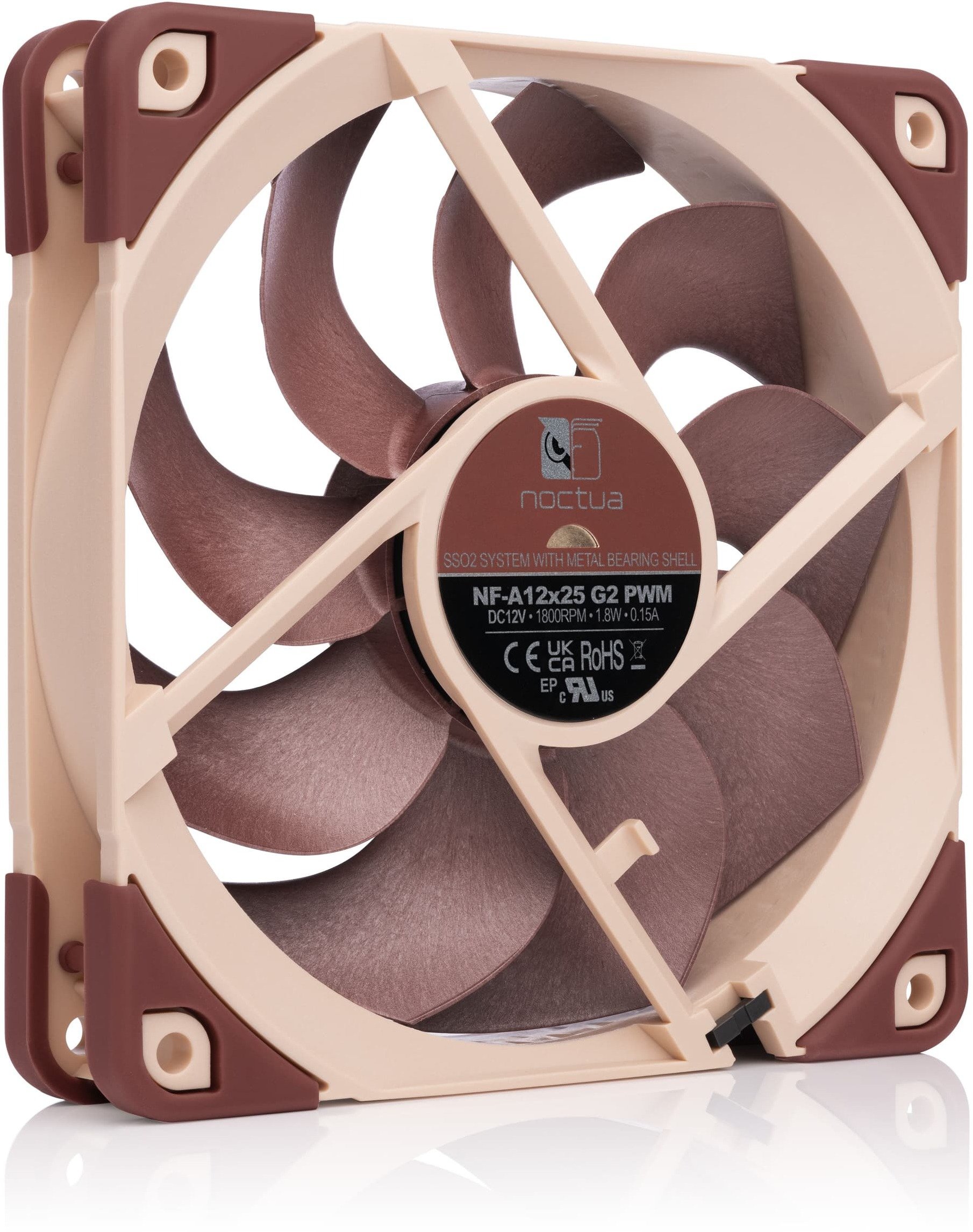 Noctua NF-A12x25 G2 PWM — це друге покоління легендарного 120-міліметрового вентилятора, яке стало справжнім флагманом у лінійці компанії. Розроблений як подальший розвиток культової моделі NF-A12x25, новий кулер отримав низку серйозних удосконалень, що дозволяють йому перевершувати попередника в усіх типових сценаріях використання. Завдяки матеріалу Sterrox LCP, надщільному зазору між лопатями та рамкою всього 0,5 мм, а також принципово новій конструкції крильчатки, вентилятор демонструє виняткову ефективність як при охолодженні корпусу, так і на радіаторах чи процесорних кулерах.