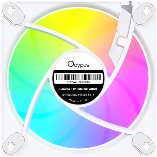 Кулер Gamma F12 Elite ARGB від Ocypus вирізняється прозорою рамкою, яка ідеально поєднується з внутрішнім світловим гало, створюючи унікальне навколишнє освітлення. Цей дизайн натхненний естетикою прозорості, де світло проходить крізь матеріал, утворюючи м'який і привабливий ефект. Високоглянсова наклейка з CD-візерунком на центральній частині вентилятора додає преміального вигляду, підкреслюючи увагу до деталей.