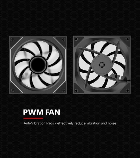 В основі вентилятора — гідродинамічний підшипник, що забезпечує плавну і довговічну роботу з мінімальним тертям. Антивібраційні гумові прокладки по кутах рамки гасять мікровібрації від корпусу, запобігаючи появі паразитних шумів при монтажі. Розміри вентилятора стандартні — 120х120х25 мм, вага з кабелями — 155 г.