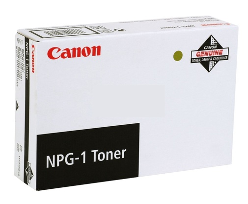 Canon NPG-1 - оригінальний тонер-картридж. Призначений для встановлення у копіювальні апарати компанії моделей:NP-1215, 1550, 6216, 6416 та 6317. Картридж легко встановлюється у друкувальний пристрій та забезпечує щоразове отримання чітких та деталізованих відбитків із насиченим чорним кольором. А якісна формула тонера гарантує необхідну стійкість до вицвітання та стирання, і гарантує, що отримані відбитки зберігатимуться впродовж тривалого часу. Ресурс картриджа розрахований на отримання до 3800 аркушів формату А4, при заповненні їх елементами на 5%.