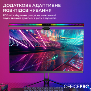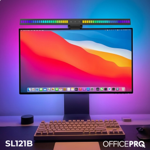 Ключовою особливістю OfficePro SL121B є асиметричне освітлення, яке спрямовує світловий потік на робочу поверхню, мінімізуючи відблиски на екрані монітора. Це значно знижує втому очей і робить тривалу роботу більш комфортною. Додатково модель оснащена адаптивним RGB-підсвічуванням, яке реагує на навколишні звуки та може працювати в ритм музики, створюючи приємну атмосферу під час роботи чи відпочинку.