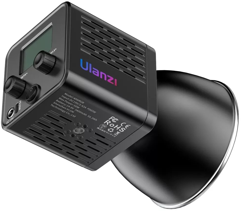 Прошивка освітлювача містить 20 світлових сценаріїв. Живлення COB-освітлювача Ulanzi 40WPRO (L024) здійснюється від вбудованого акумулятора потужністю 50,3 Втг (14,8 В, 3400 мАг), а також від мережевого адаптера з параметрами 19 В та 3,42 А.