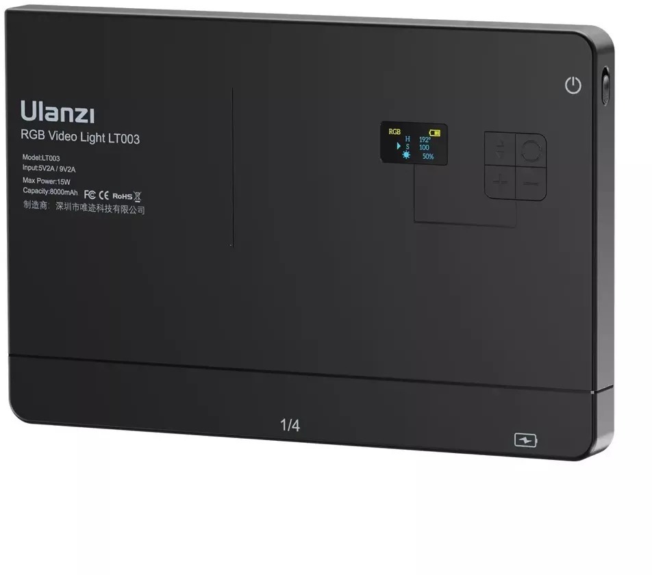 Відеосвітло Ulanzi LT003 має колірну температуру світла від 2500 до 9000К, а також режим HSL, який дасть вам змогу вибрати будь-який колір і відтінок. А 20 видів світлових ефектів дадуть змогу додати атмосфери для ваших відеороликів. Ulanzi LT003 можна встановлювати на стійку або фото штатив завдяки наявності на корпусі отвору з різьбленням 1/4. Так само на корпусі є роз'єм Type-C для заряджання відеосвітла або використання його від павербанка.
