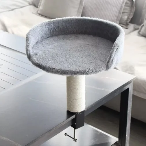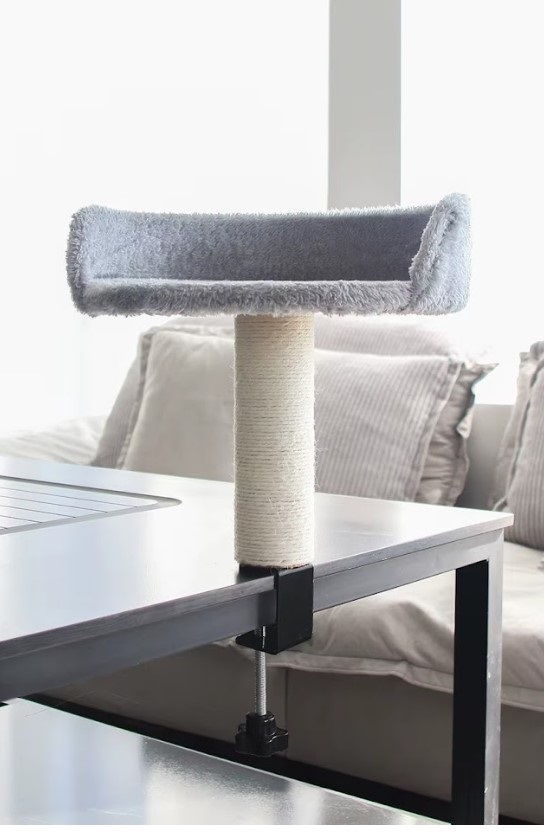 Подаруйте своєму улюбленцю комфорт поруч із вами! — Лежанка з кріпленням для столу Me&Pet - це стильне багатофункціональне ліжко-гамак, яке кріпиться до столу, обертається на 360° та поєднує в собі м’яке плюшеве спальне місце і дряпалку для кігтів.