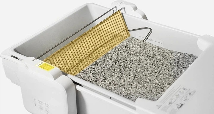 Для максимальної гігієни дно лотка має спеціальне тефлонове покриття, стійке до подряпин і налипання вологих грудок. Запатентована система подвійних граблів із зазором 8 мм ретельно просіює наповнювач, відокремлюючи відходи та залишаючи чисті гранули для подальшого використання. Відходи автоматично переміщуються у герметичний задній контейнер, де надійно блокуються неприємні запахи.