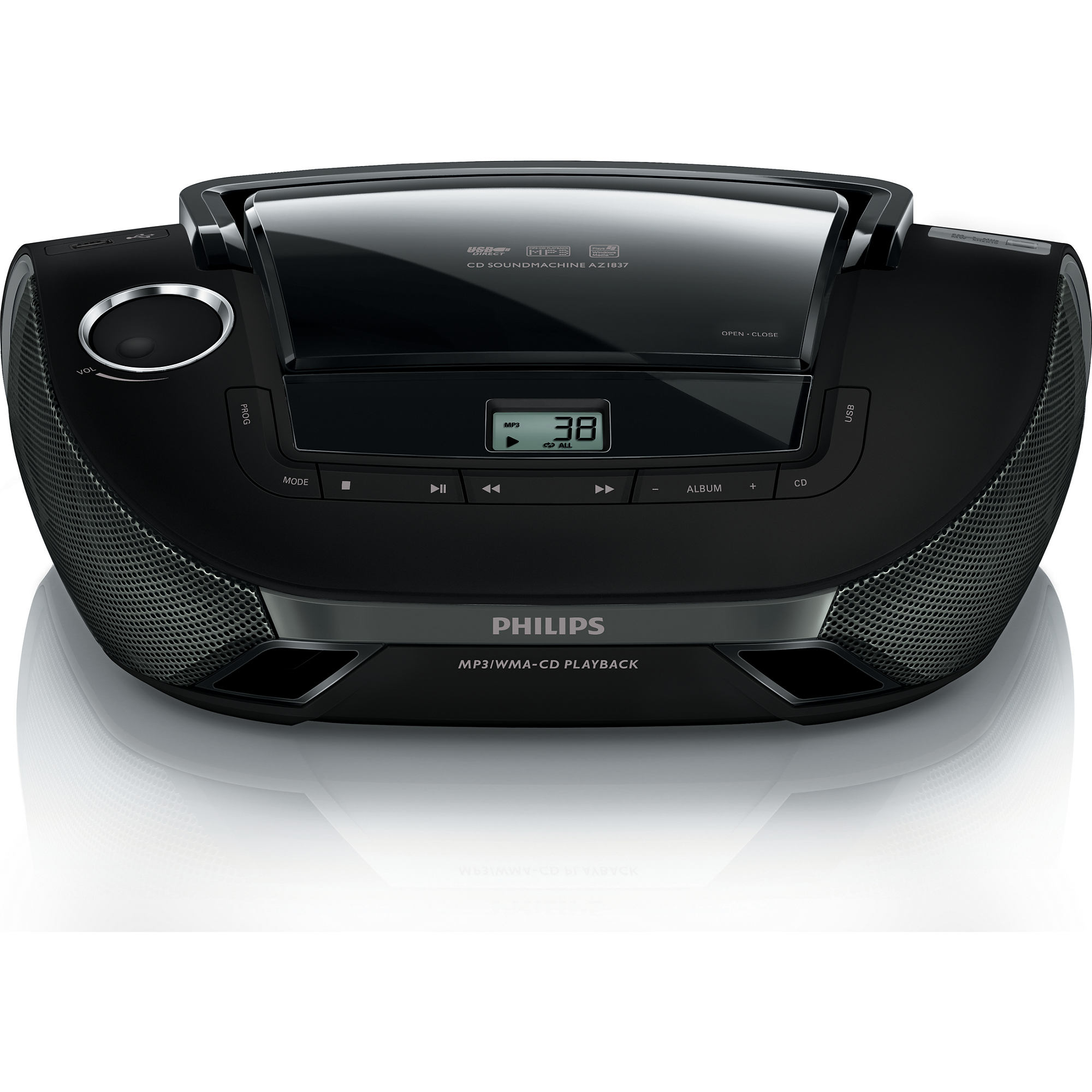 Компанія Philips представляє нову модель магнітоли AZ1837/12. Цю модель відрізняє дуже стильний і сучасний дизайн. Чорний корпус і ергономічні форми будуть прекрасним доповненням до будь-якого інтер'єру. Звукова стерео система дозволить вам в повному обсязі насолодитися звуком при прослуховуванні улюблених дисків. Оснащена USB-входом, ця модель буде відтворювати музику прямо з підключеного пристрою. За допомогою функції MP3 Link можна насолоджуватися якісною музикою, просто підключивши до магнітоли MP3-плеєр. Цифрові файли можна без погіршення якості звучання зменшити до 10 разів. Вбудований FM-тюнер дозволить слухати улюблені радіохвилі. Режим «в довільному порядку» подарує вам нові відчуття від прослуховування вже знайомих дисків.
