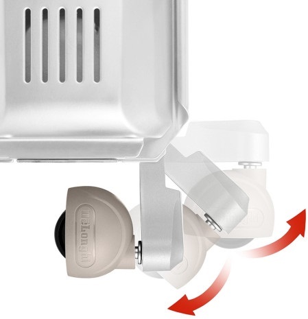 Для мобільності пристрій оснащений зручними складними коліщатками, що дозволяють легко переміщувати радіатор з кімнати в кімнату. Таким чином, DeLonghi V 550918 T WB поєднує швидкий прогрів, тривале тепло, елегантний дизайн та простоту використання, роблячи його надійним і комфортним рішенням для дому чи офісу.