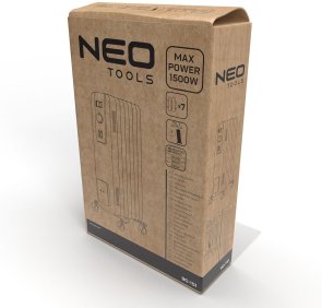 Масляний радіатор Neo Tools оснащений ручною рукояткою та колесами, що робить його легким у переміщенні з кімнати в кімнату. Крім того, передбачений тримач кабелю довжиною 1.35 м для акуратного зберігання проводів. Пристрій працює від стандартної електромережі 230 В, 50 Гц, що робить його універсальним і зручним у використанні.