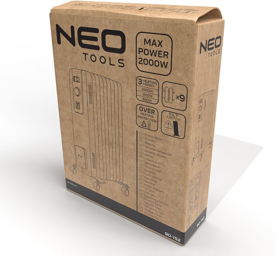 Neo Tools 90-152 відрізняється надійністю, довговічністю та зручністю у щоденному використанні, забезпечуючи рівномірне та ефективне опалення навіть у компактних кімнатах. Його сучасний дизайн гармонійно вписується в будь-який інтер’єр, а багаторівневе регулювання потужності дозволяє підтримувати комфортну температуру без зайвих витрат електроенергії.